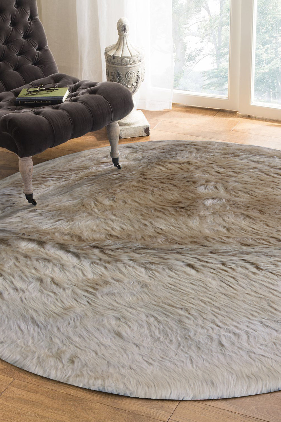Turkish Cosmos Fur Rug - 3.9 x 3.9 Ft - Brown - Fluffy Furry Floor Decor Rugs