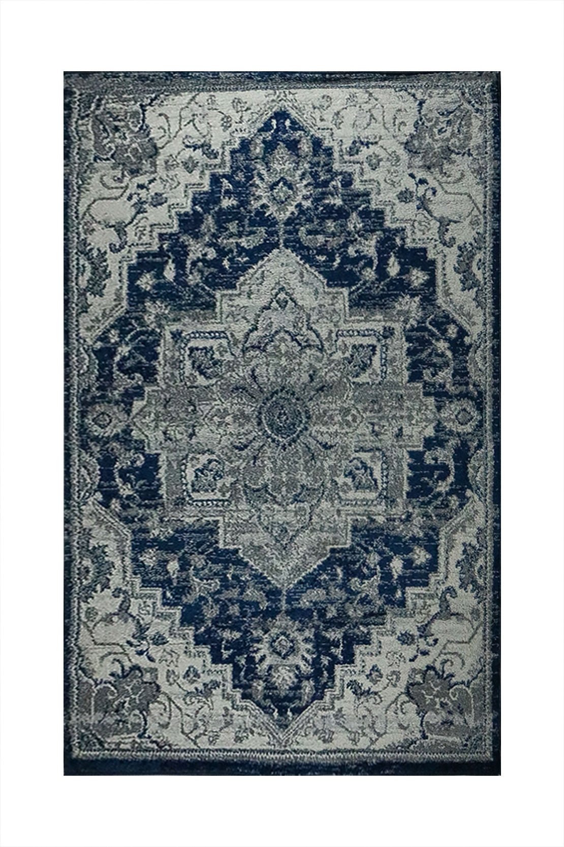 Turkish Modern Festival WD Rug - 5.3 x 7.5 FT - Blue and Cream - Sleek and Minimalist for Chic Interiors