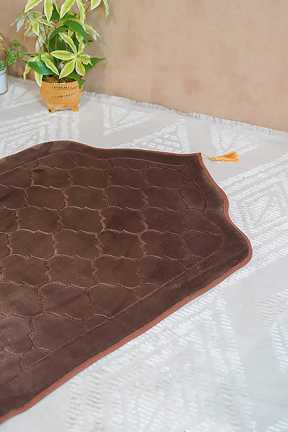 Sajda Janamaz - Premium Velvet Quilted Prayer Mat - Dark Brown